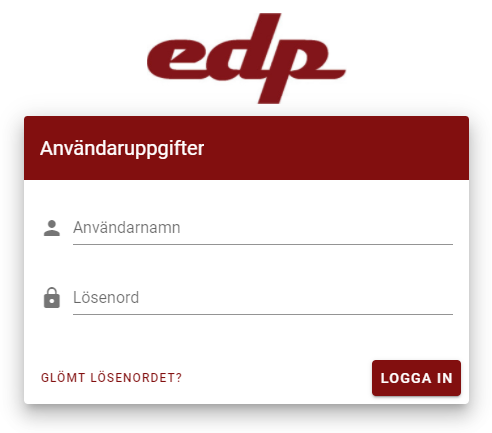 Kundportalen nås via länken https://kundportal.edp.se/ Inloggningsuppgifterna är unika, varje användare har ett eget konto med en unik inloggning som är kopplat till dennes e-postadress.