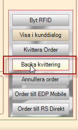 Upptäcker man att det blev fel kan man backa en utförd kvittning genom att klicka på knappen Backa kvittering.