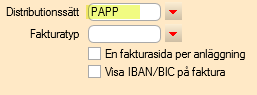 För att ta ut en avgift på pappersfaktura måste ett nytt distributionssätt, PAPP , läggas upp i System>Småregister; EK - Distributionssätt.
