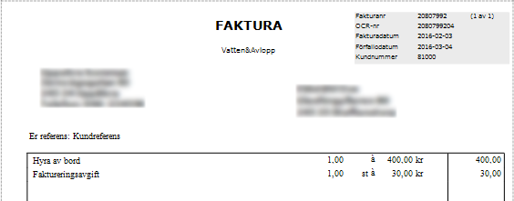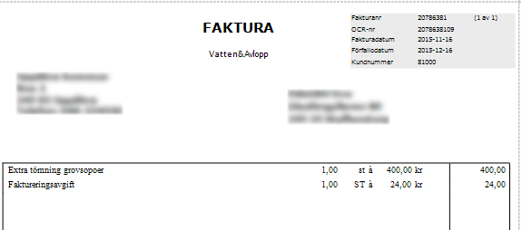 Exempel på faktura med betalsätt BGKO som får faktureringsavgift