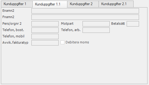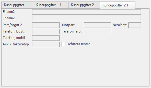 Hämtas in automatiskt om man knutit ytterligare en kund på fliken Kunduppgifter 2 och om dessa uppgifter finns sparade på den kunden. |