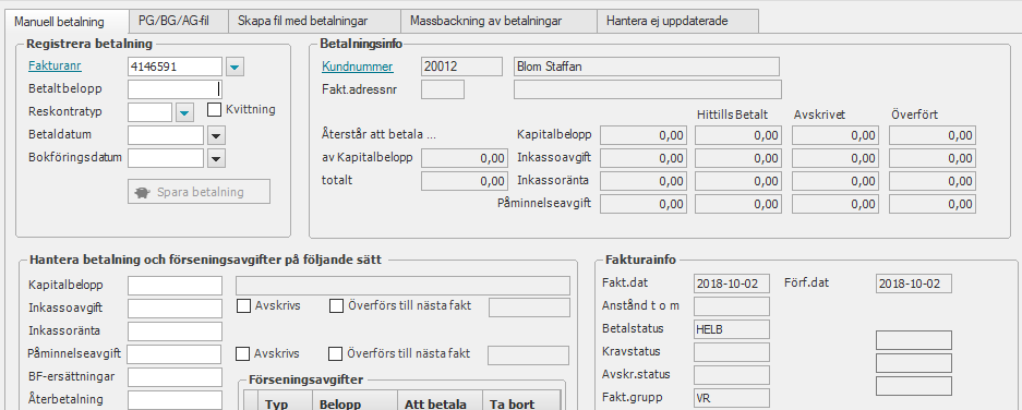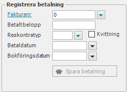 - Ange betalt belopp, betaldatum, bokföringsdatum och tryck sedan på knappen ”Spara betalning”.