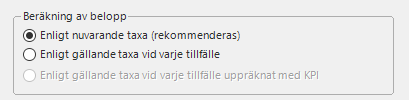 I samband med uträkningen behöver ni bestämma vilken taxa som ska användas.