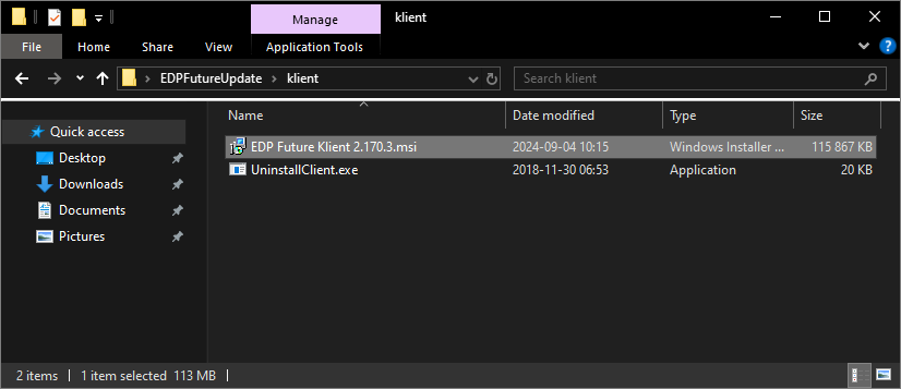 Dubbelklicka på filen EDP Future Klientxxx.msi för att starta klientuppdateringen.