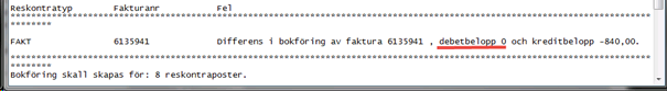 Om det är 0 kr i debetbeloppet på en faktura kan det vara så att inga fakturaandelar har skapats.