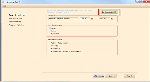 Förbrukningsstatistiken tittar enbart på faktiska avläsningar under vald period samt preliminär årsförbrukning för resterande del av perioden.