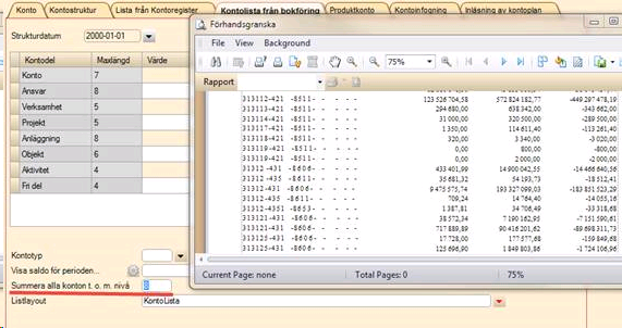 Om man vill se om en viss kontosträng har använts kan man med fördel använda sig av Kontolista från bokföring som du hittar i Bokföring>Konto