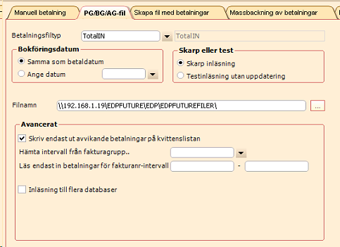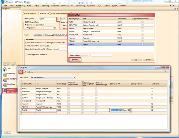 Antingen via System->Småregister->EK-Betalningsfiltypeller eller via knappen Register i diaglogrutan.