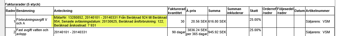 Från och med programversion 2.70 behöver man inte längre ha separat faktura för varje VA-tjänst då uppgifter om mätaren hamnar i anteckningsfältet på artikelraden.
