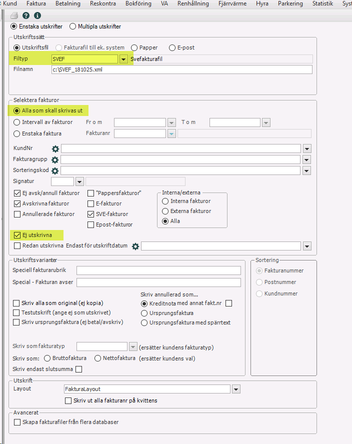 - Skapa först er vanliga fakturafil på samma sätt som ni brukar göra.