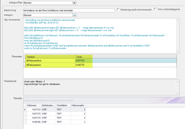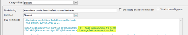 DECLARE @Fakturanrfrom bigint SET @Fakturanrfrom = '1'-- Ange fakturanummer fr o m här