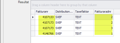 where fa.strDistributionssatt='SVEF'and fa.lngFakturanr between @Fakturanrfrom and @Fakturanrtom and fr.strTaxefaktor='TEXT'